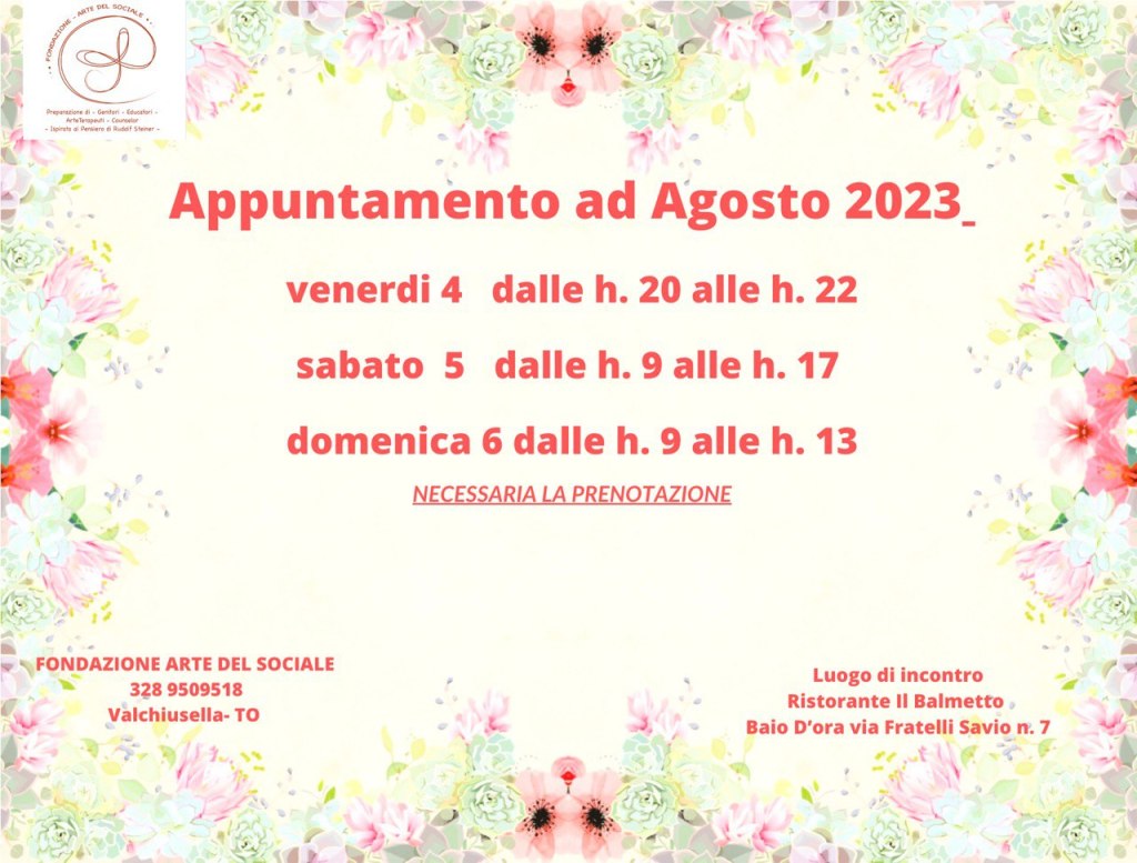 - sabato, 5 agosto: dalle h. 9 alle h. 17