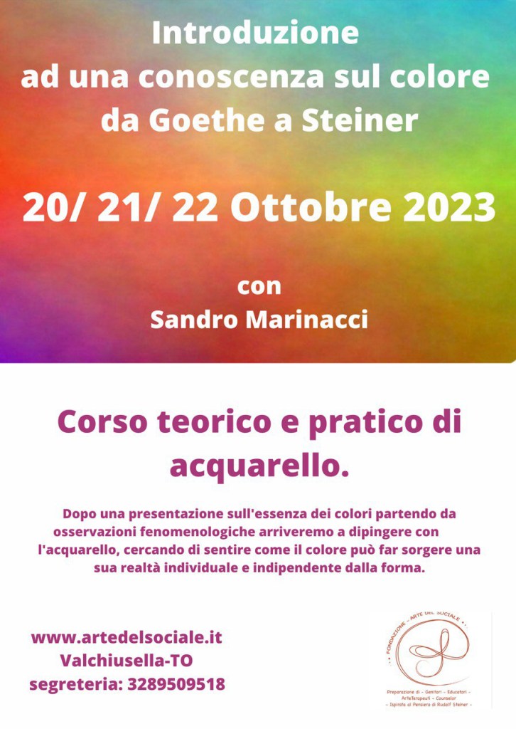 Dopo una presentazione sull’essenza dei colori partendo da osservazioni fenomenologiche arriveremo a dipingere con l’acquarello, cercando di sentire come il colore può far sorgere una sua realtà individuale e indipendente dalla forma.