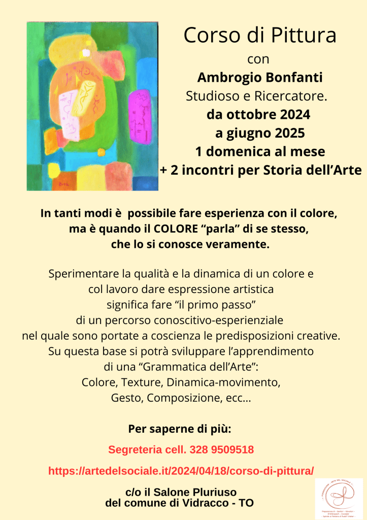 Per altre informazioni telefonare alla segreteria: 328 9509518 oppure scrivere a: info@artedelsociale.it